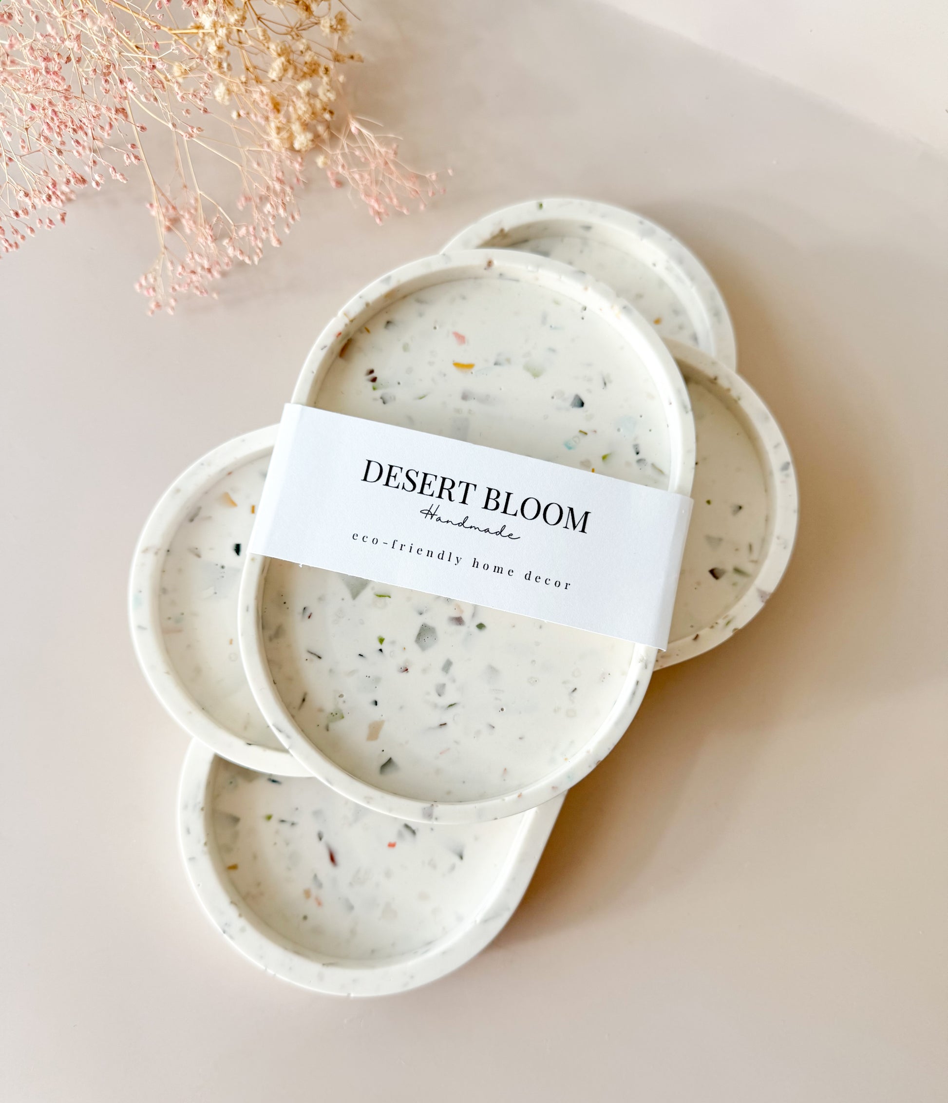 Clean lines and soft curves come together in these handcrafted oval trays, perfect for styling candles, corralling jewelry, or holding your favorite everyday pieces. Made from eco-friendly Jesmonite, each tray is sealed for durability and finished in your choice of Cream, Sandstone, or Terrazzo.